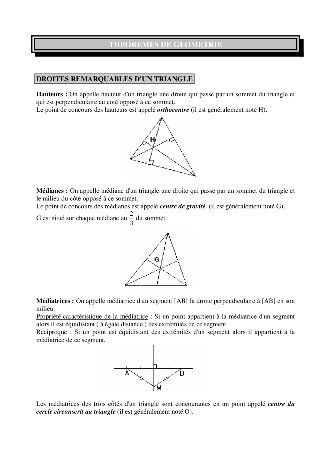 Théorèmes plus importantes de géométrie Résumés Mathématiques Docsity