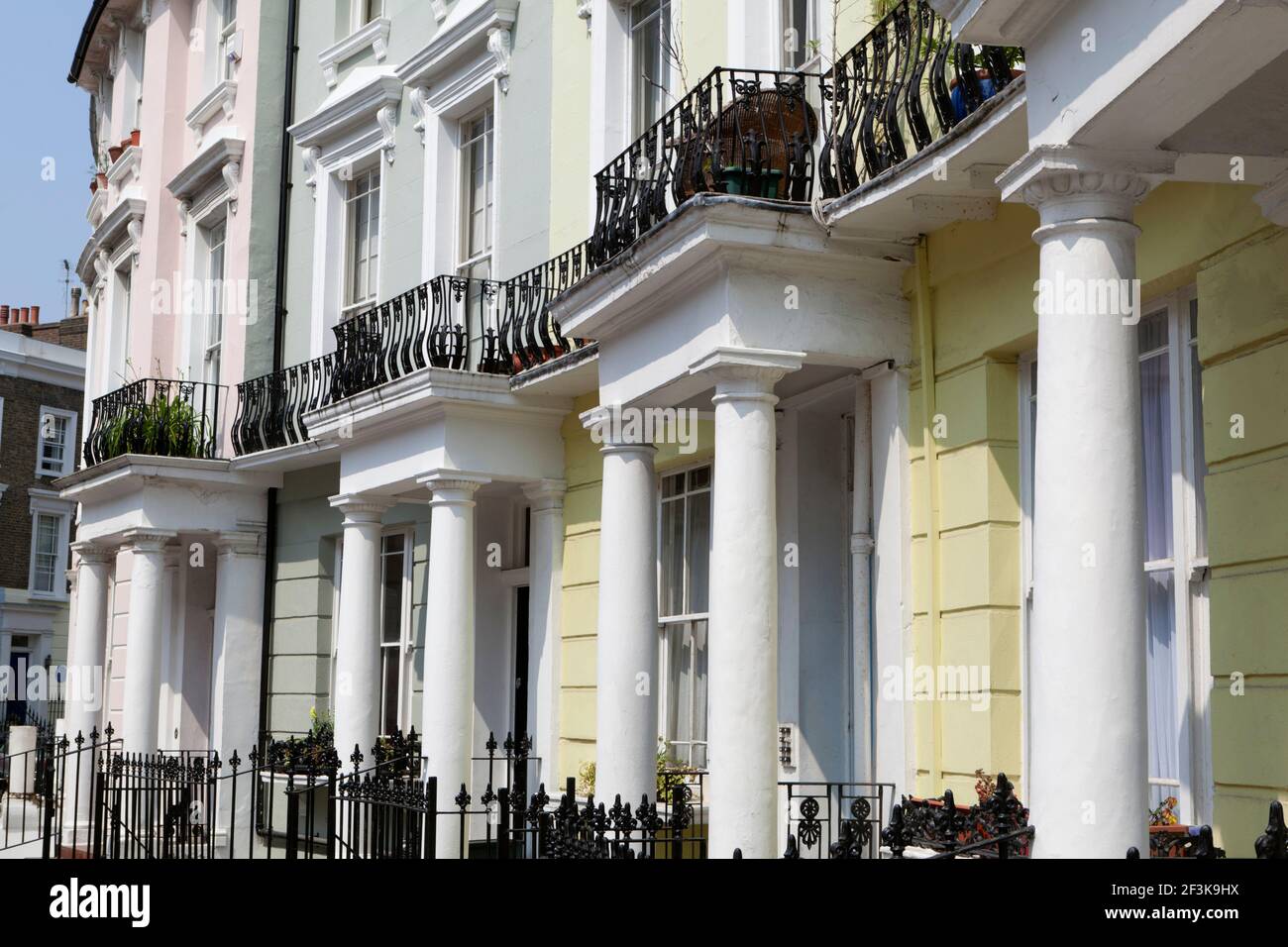 Terraced houses in Chalcot Crescent, Primrose Hill, feature decorative balconies and porticoes