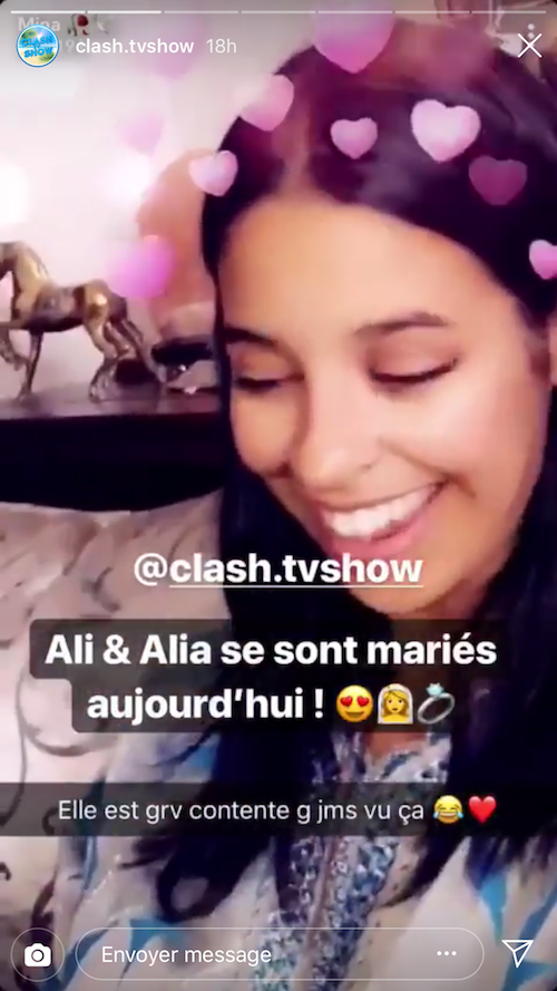 Le 12/12/2023 à 08h35. Modifié le 12/12/2023 à 10h29. par Emilie Nougué. Crédits photos : Capture Instagram. Voir le diaporama'. Ali et Alia, qui se sont rencontrés dans l'émission Secret.
