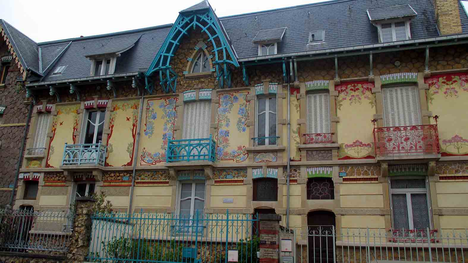 Architecture Art Nouveau. Entre 1890 et 1914, les notables nancéiens ayant le gout du contemporain se font construire des villas « à la mode » dans le style Ecole de Nancy. C'est ainsi qu'apparaissent des maisons particulières étonnantes ! Certaines sont volontairement édifiées le long de la voie ferrée, pour être vues !!!