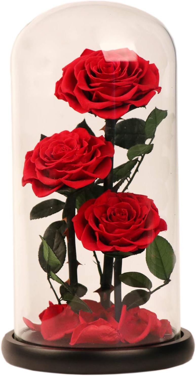 Ameublement et décoration JTTVO Rose eternelle sous Cloche Rose enchantée la Belle et la bete