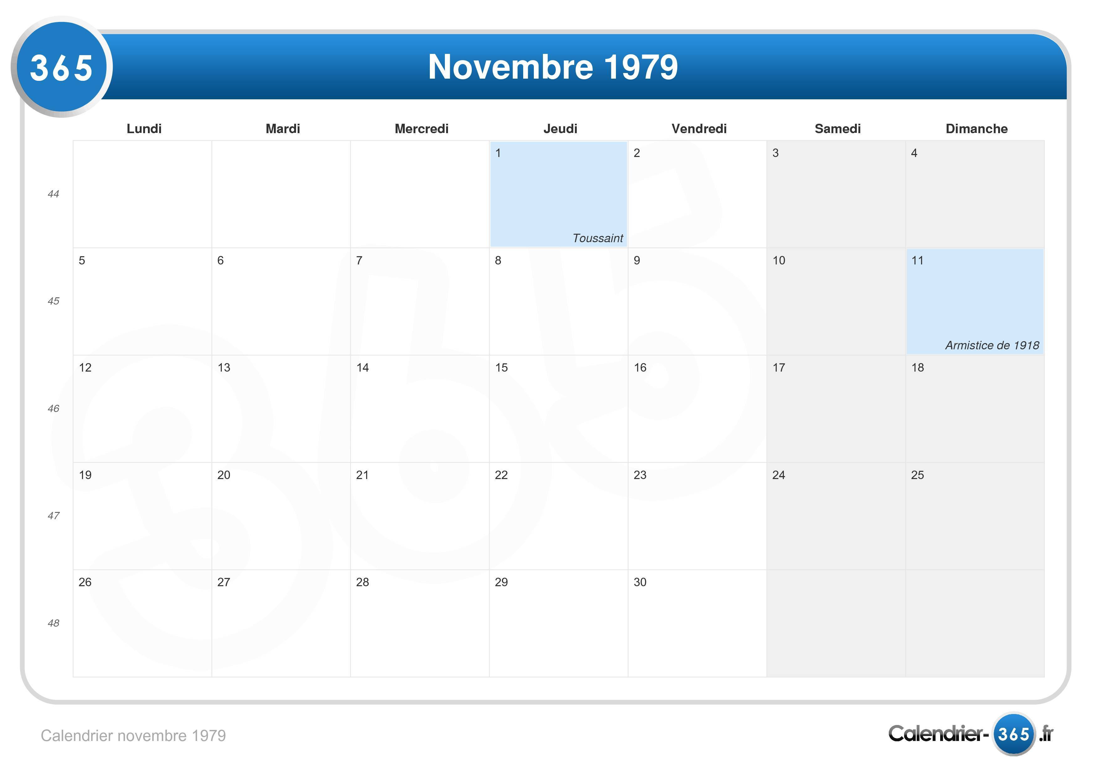 Calendrier 1979 avec les jours fériés et les vacances scolaires. Nous vous proposons le calendrier 1979 gratuit à télécharger ou à imprimer pour vous organiser et planifier vos rendez-vous. Nous proposons également le calendrier des vacances scolaires 1979 et les dates de tous les jours fériés.