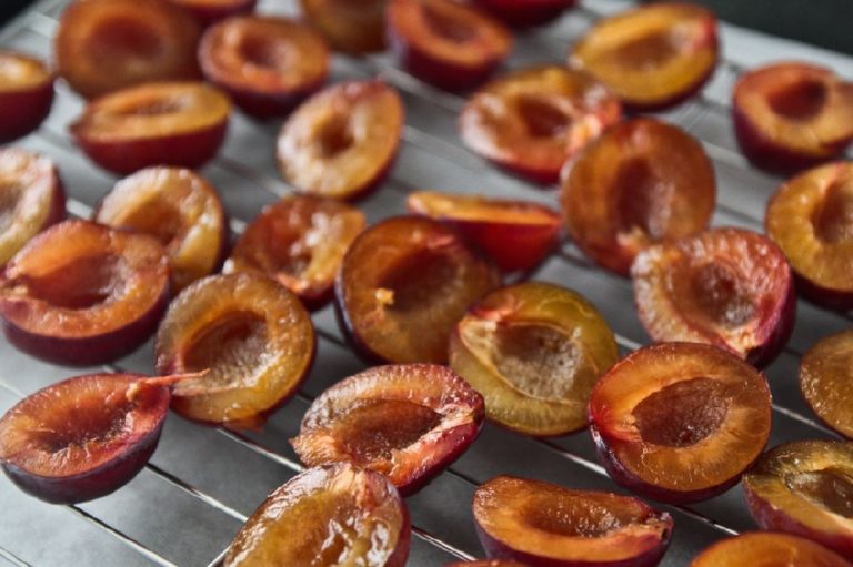 Voici les étapes à suivre pour faire sécher des prunes au déshydrateur de nourriture : 1 - Choisissez des prunes fraîches de première qualité. N'utilisez pas de prunes abîmées ou trop mûres. 2 - Lavez les prunes. Coupez-les en deux. Utilisez pour cela un petit couteau bien aiguisé. Retirez la tige et le noyau.