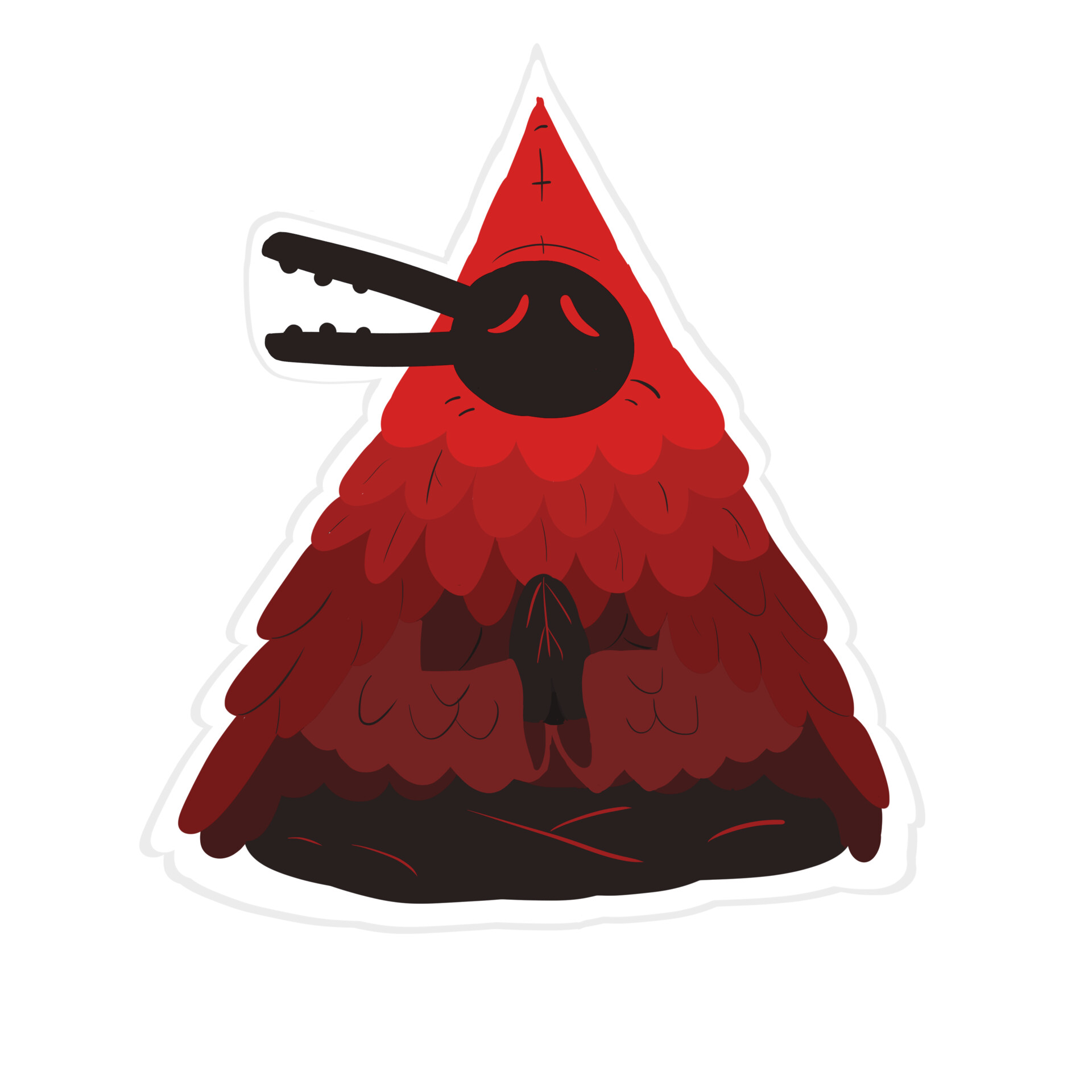 Clauneck is a resource NPC in Cult of the Lamb. He provides the Lamb with Tarot Cards. Clauneck runs the Tarot Card shop. The shop is signified by stars hanging by an entrance to a room. He deals 2 Tarot Cards (you can only take one) and gives the option to buy another dealing for 10-40 Coins (the amount of coins differs per region, and there is a cooldown for buying dealings.) He has a strong.
