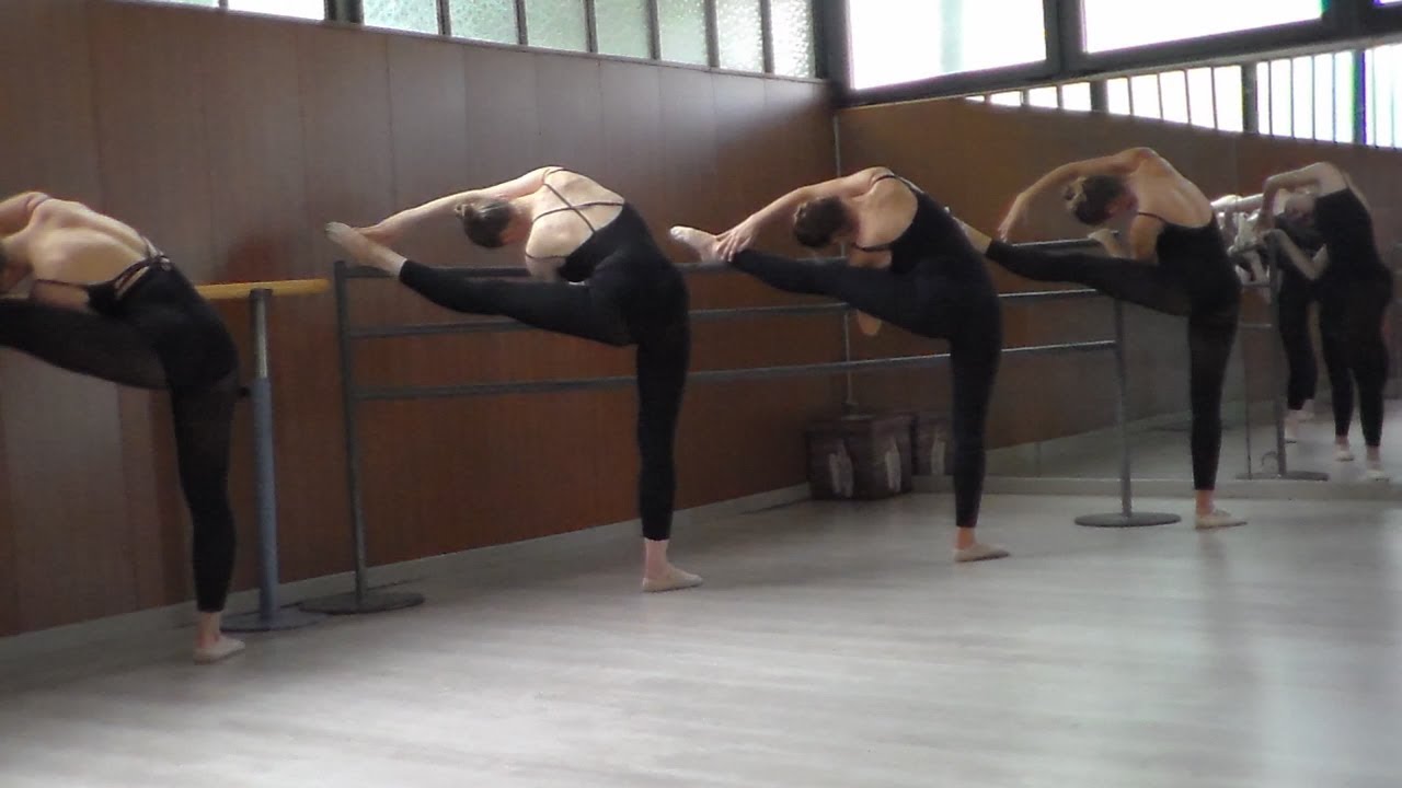 L es deux premières années, les cours se déroulent en trois temps: échauffement au sol, travail à la barre, et exercices au "milieu". Grands battements au sol. L e travail d'échauffement débute au sol, et se poursuit à la barre, au cours de laquelle les danseuses apprennent également à "placer" correctement leur corps. Ensemble à.