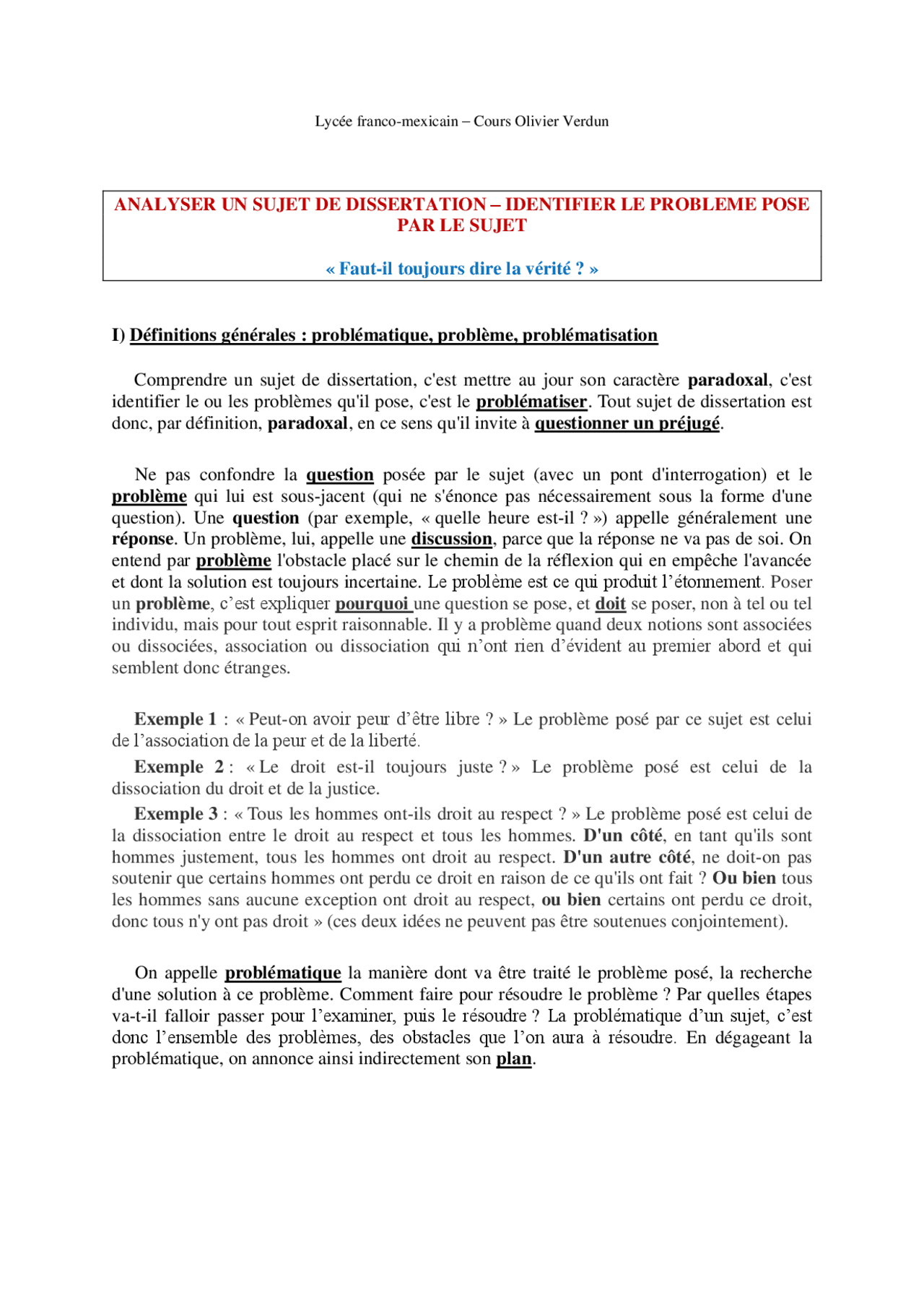 Corrigé. Faut-il toujours dire la vérité ? (ou : la vérité est-elle toujours un devoir ?) Faut-il : nécessité, devoir, exigence morale, valeur (on est contraint, on ne peut pas faire autrement ; ou bien on est obligé)