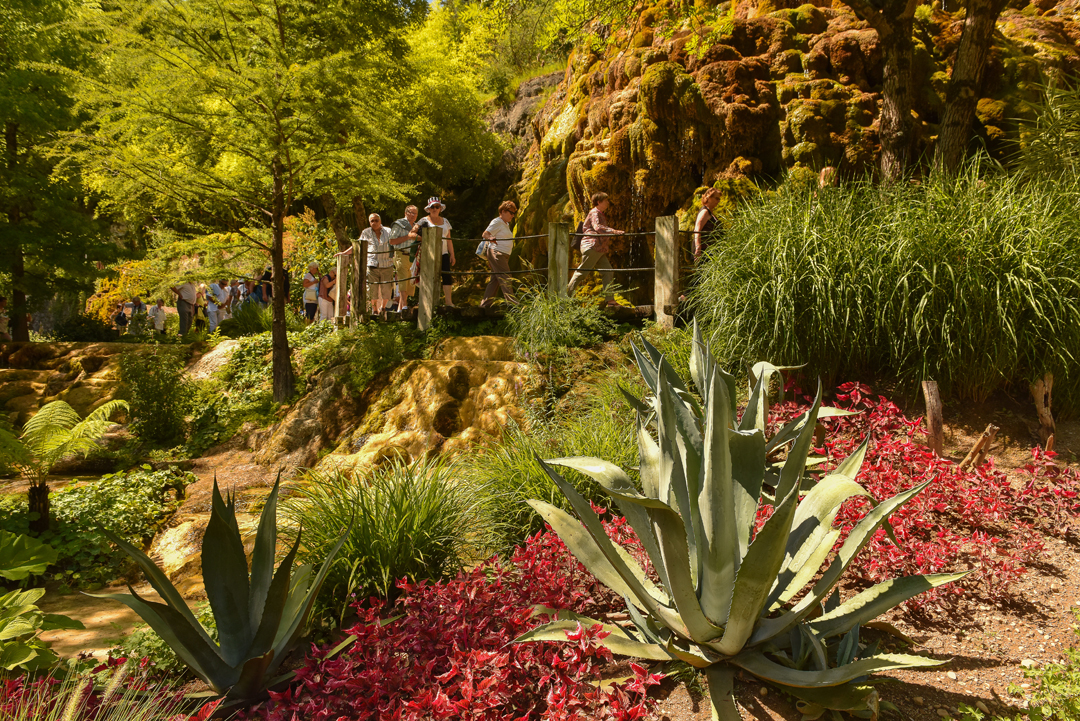Réservation en ligne obligatoire. Dans le cadre des mesures sanitaires liées au Covid-19 le nombre de visiteurs sur le site est limité. L'accès au Jardin des Fontaines Pétrifiantes est réservé uniquement aux visiteurs munis d'un e-billet. Une véritable visite VIP ! → RÉSERVER VOTRE E-BILLET. Un jardin de fleurs et d'eau.