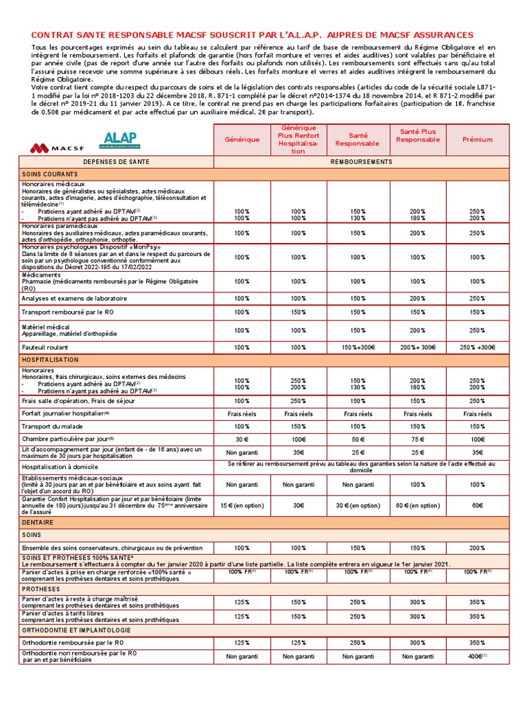 Tableau de garanties Complémentaire Santé V. 10/2023. Document non contractuel. Sauf mention contraire dans le tableau des garanties : - Les garanties présentées ci-dessous s'entendent remboursement Sécurité sociale compris. Nos remboursements sont versés dans la limite des frais engagés. - Les forfaits sont versés par année d.