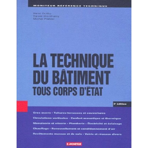 La technique du bâtiment: tous corps d'état. Daniel Montharry, Michel Platzer. Éditions le Moniteur, 2009 - Building - 793 pages. Bibliographic information. Title: La technique du bâtiment: tous corps d'état Moniteur référence technique, ISSN 1257-9823 Moniteur technique: Authors: Daniel Montharry, Michel Platzer: