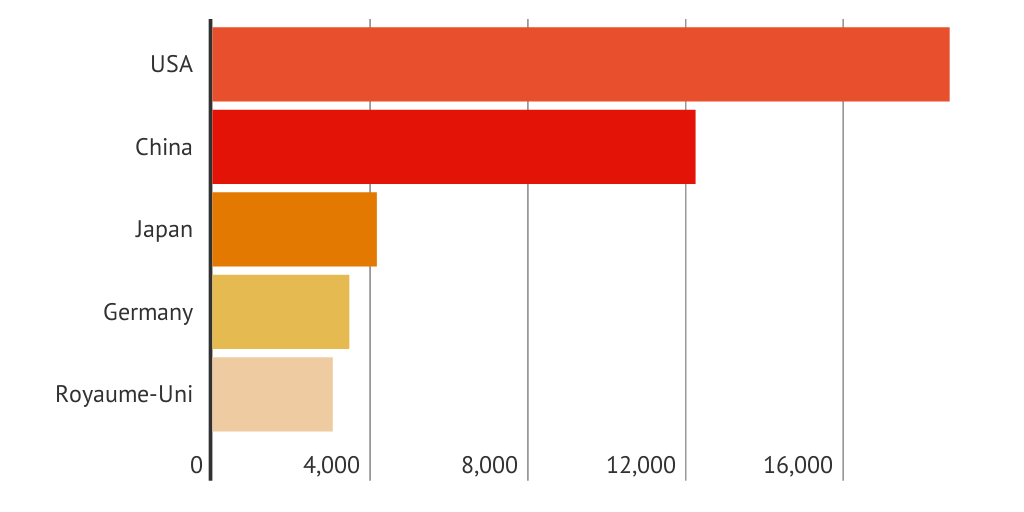3. Les États-Unis avec 9,83 millions km², 3ᵉ place au classement des plus grands pays du monde. Les États-Unis sont le 3ᵉ plus grand pays du monde en terme de superficie, avec une étendue d'environ 9,8 millions de kilomètres carrés. Les paysages y sont également très variés, allant des canyons de l'Ouest Américain aux grandes villes comme New-York ou San Francisco.