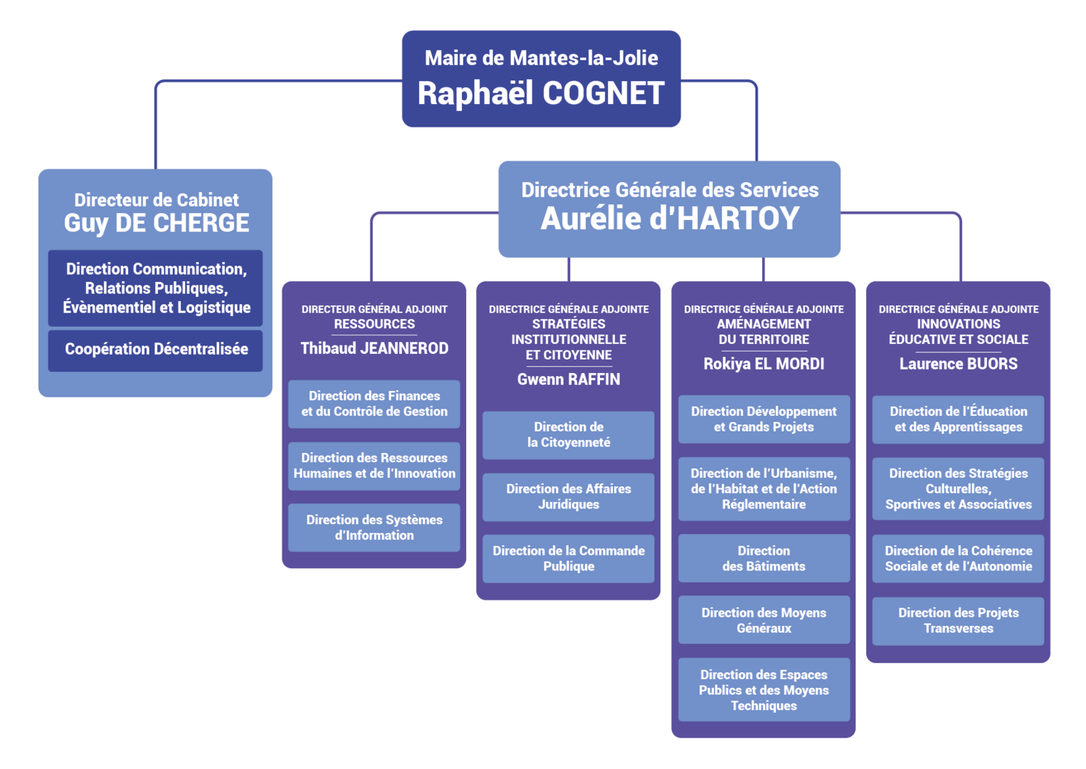 DIRECTION GÉNÉRALE . AURELIE D'HARTOY Directrice Générale des Services Les services municipaux de la Ville de Mantes-la-Jolie sont placés sous l'autorité d'AURÉLIE D'HARTOY, Directrice Générale des Services, assistée de 5 Directeurs Généraux Adjoints (DGA).