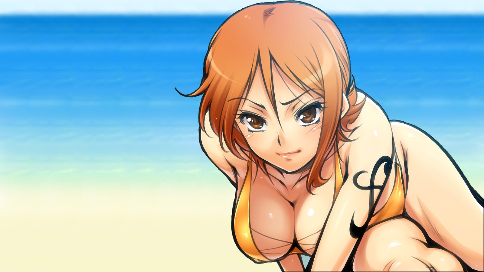 hd wallpaper Nami Sexy Beach Bikini Cleavage 0561
