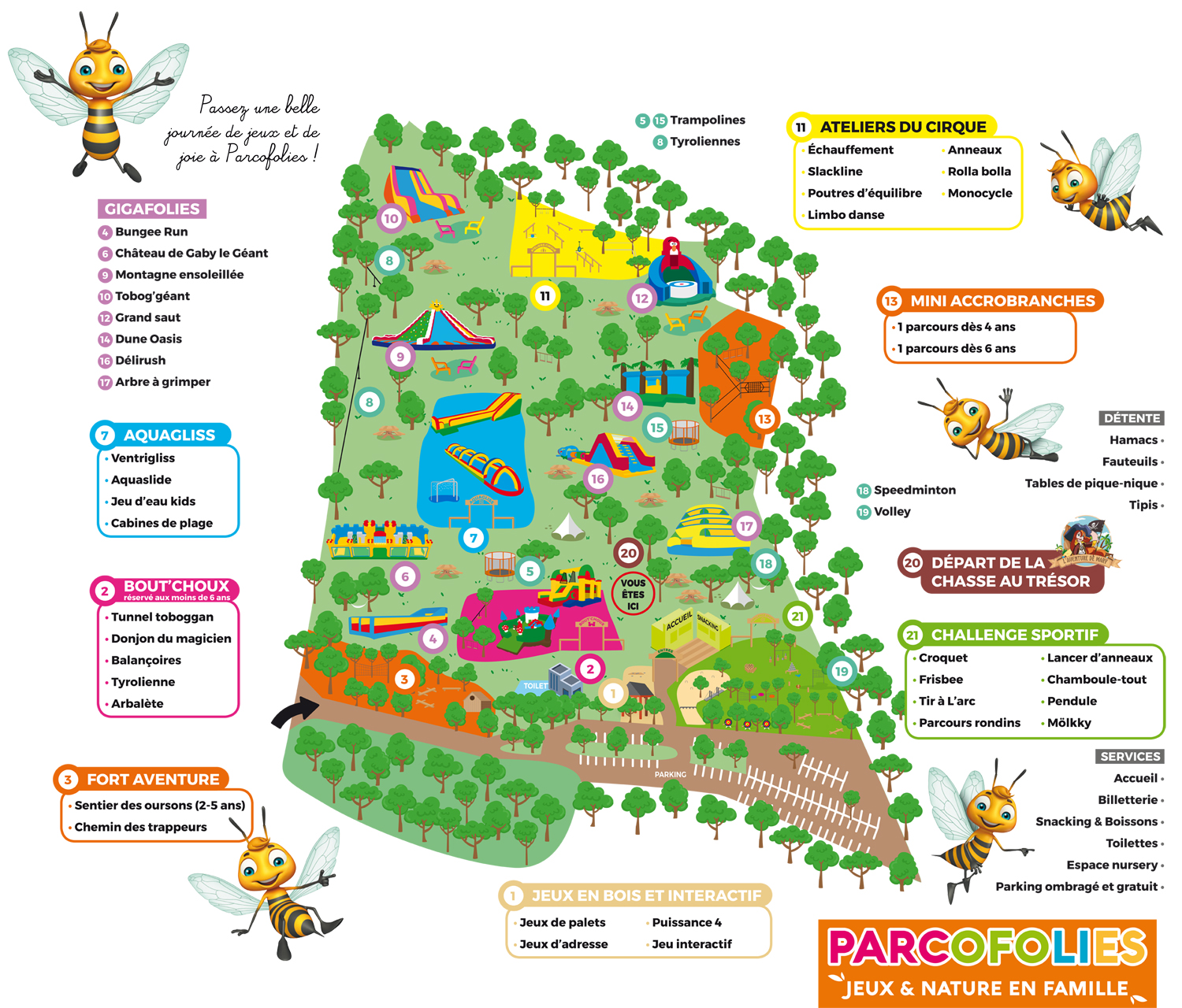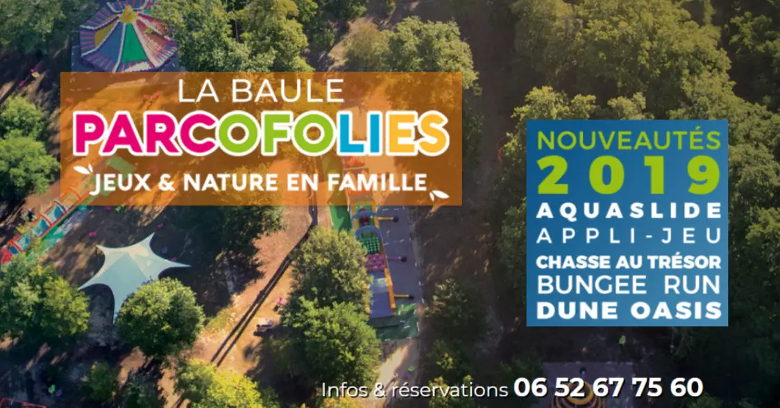 Parcofolies, le parc de loisirs de La Baule. Grâce à son concept Jeux et Nature, Parcofolies est le Parc de loisirs idéal pour les enfants et les familles. 50 activités réparties sur 5 hectares permettent aux enfants - dès 2 ans - de découvrir de nouvelles sensations, de jouer en équipe, de partager des moments de jeux et de.