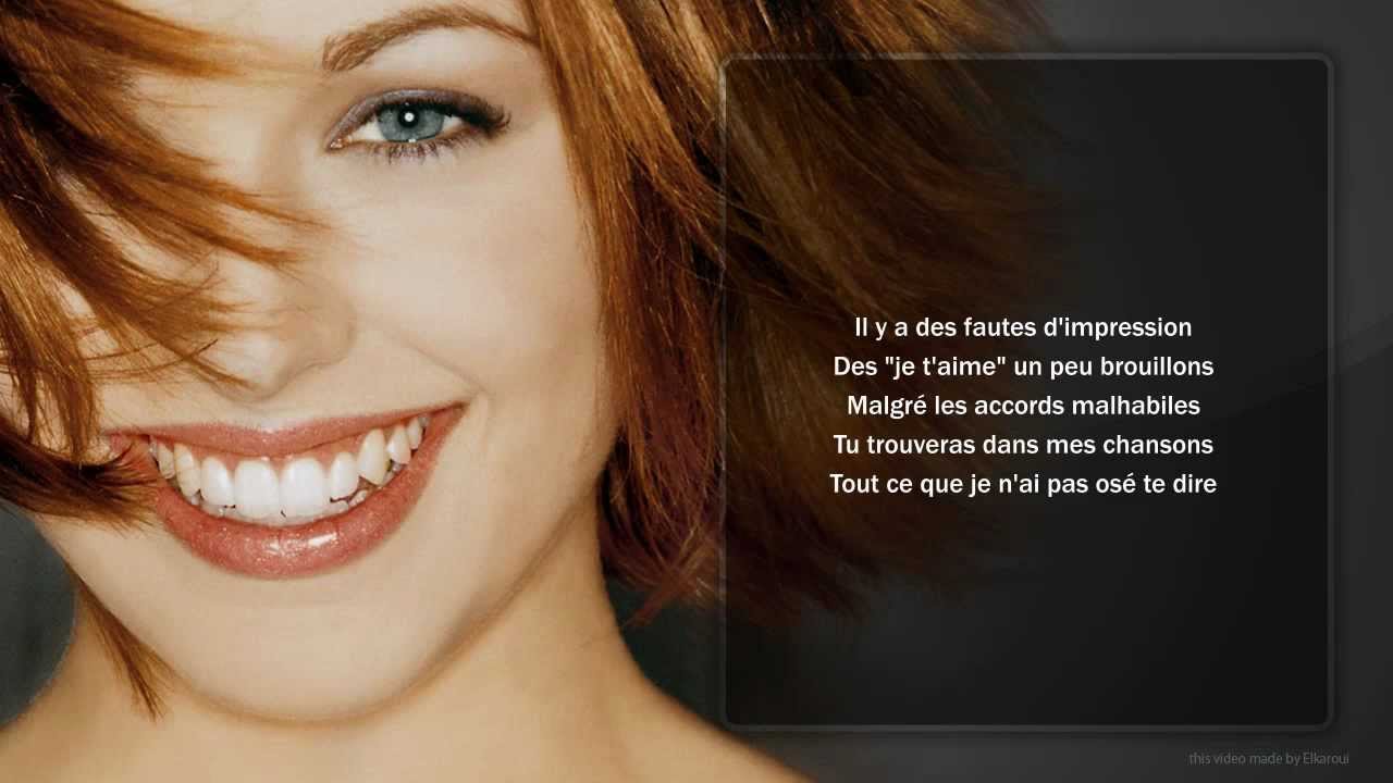 The easy, fast & fun way to learn how to sing: 30DaySinger.com Comme tout le monde j'ai mes défauts J'ai pas toujours les mots qu'il faut Mais si tu lis entre les lignes Tu trouveras dans mes chansons Tout c'que je n'ai pas su te dire Il y a des fautes d'impression Des "je t'aime" un peu brouillon Malgré les accords malhabiles Tu trouveras dans mes chansons Tout ce que je n'ai pas osé te.