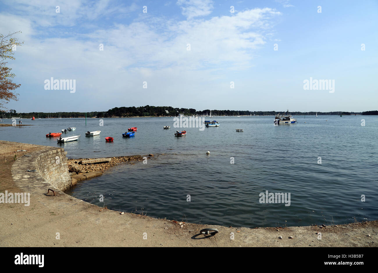 View of Golfe du Morbihan from Pointe du Trech, Ile Aux Moines, Morbihan, Brittany, France Stock