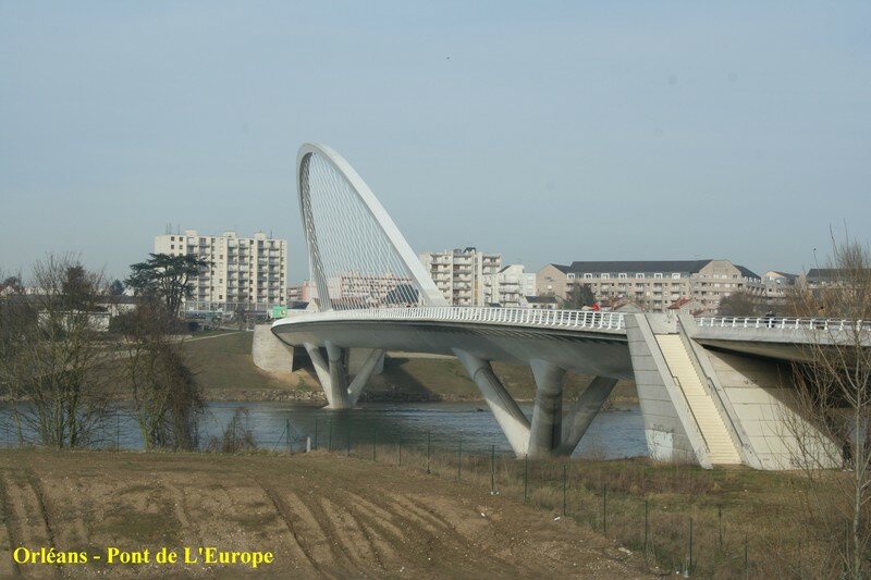 Présentation Pont de l'Europe. Le Pont de l'Europe est le pont le plus récent de la ville d'Orléans. Construit en 1998, il relie Orléans - Saint-Jean-de-la-Ruelle à Saint-Pryvé-Saint-Mesmin. Ce pont en arc bow-string s'étend sur 470m pour 25m de large. Il permet aussi bien aux véhicules qu'aux piétons de traverser la Loire.