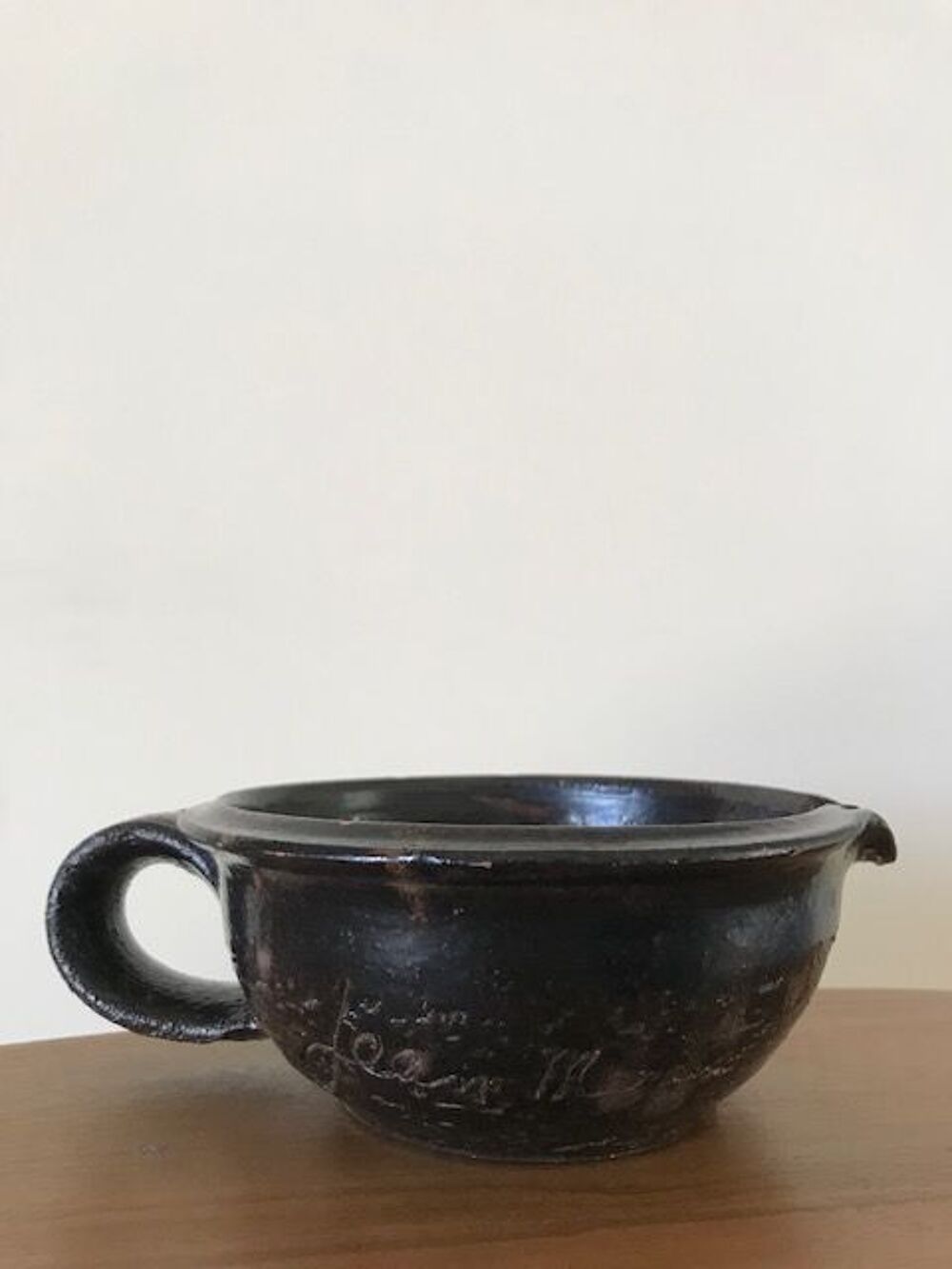 Poterie de Jean Marais. DESCRIPTION: Poterie signée par Jean Marais faite en argile et vernie noir.En parfait état. DIMENSIONS: H 11 cm x DM 15 cm PRIX: sur demande POTTY BY JEAN MARAIS 1960. DESCRIPTION: Potty signed by Jean Marais made of clay and glazed with a gun metal black finish.Perfect condition. DIMENSIONS: H 11 cm x DM 15 cm PRICE: on request