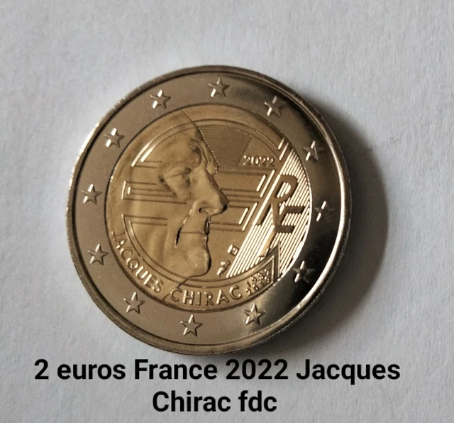 Description. Pièce 2 euros Jacques Chirac. 2 Euros Commémorative FRANCE 2022 frappe UNC. Pour son 90e anniversaire la Monnaie de Paris rend hommage à Jacques Chirac en frappant une pièce de 2 euros à son effigie. Président de la République française à deux reprises il fut l'un des principaux architectes de l'Europe.