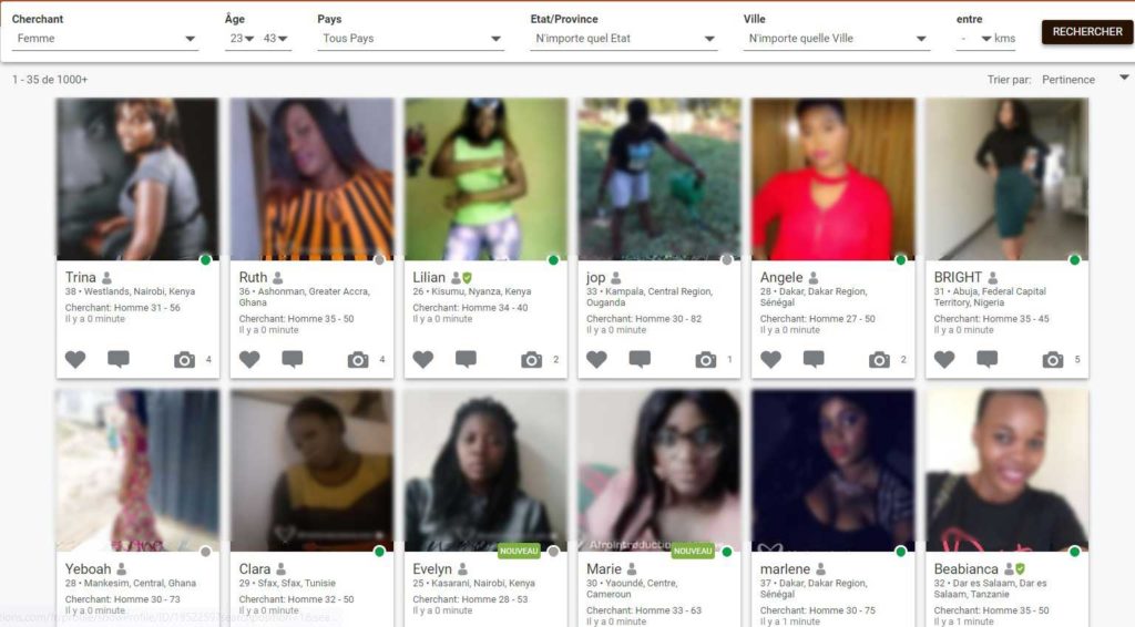 AFRIQUE.PROXIMEETY.COM est un site de rencontre sérieux qui compte plusieurs centaines de milliers d'inscrit (e)s. C'est le site idéal pour trouver l'amour ou l'amitié dans toute l'Afrique francophone. QUELQUES FONCTIONNALITES : - Chaque membre peut déposer sa petite annonce descriptive. - Dépôt de photos (jusqu'à 5).