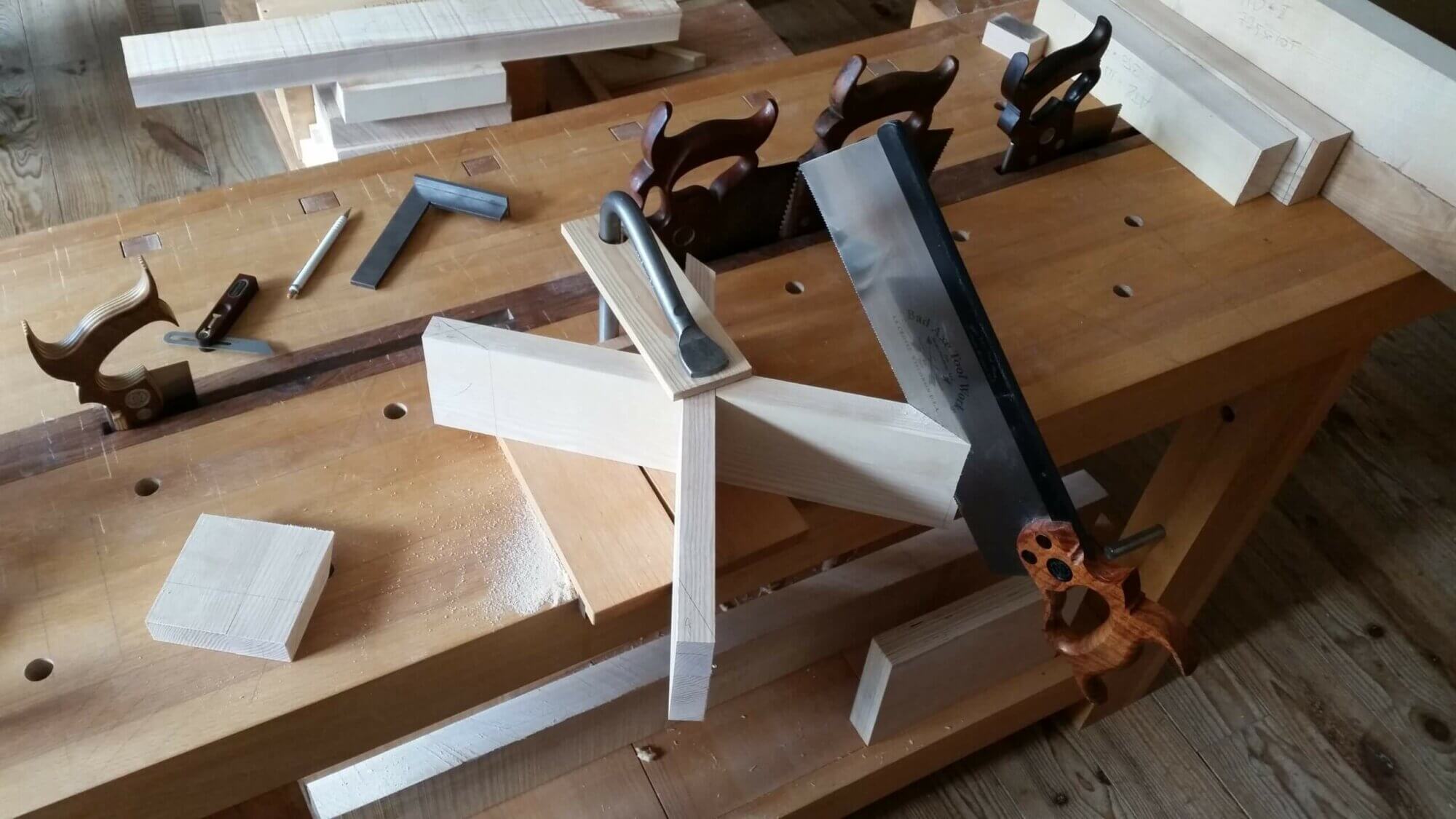 Les Fondamentaux du Travail du Bois à la Main - 5 x 3h. Un cycle initial de 5 ateliers théoriques et démonstratifs de 3h qui permettent d'acquérir les bases du travail du bois à la main. On y abordera le matériau bois, l'affûtage des tranchants, le corroyage, les assemblages à tenon-mortaises et les assemblages à queues d'arondes.